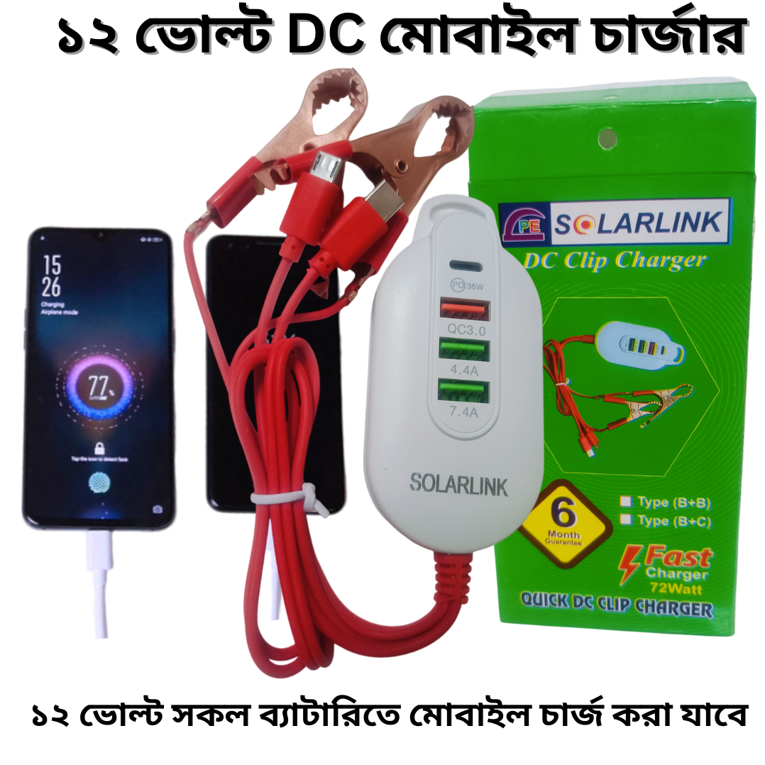 12V Solar/DC Mobile Phone Charger 6.4A বিশেষভাবে ডিজাইন করা হয়েছে 12V DC ব্যাটারি সিস্টেমের জন্য। এই 12V Solar/DC Mobile Phone Charger 6.4A ব্যবহার করে রিকশা, ভ্যান, ইলেকট্রিক বাইক, স্প্রে মেশিন বা সোলার সিস্টেম থেকে সহজেই মোবাইল চার্জ করা যায়।